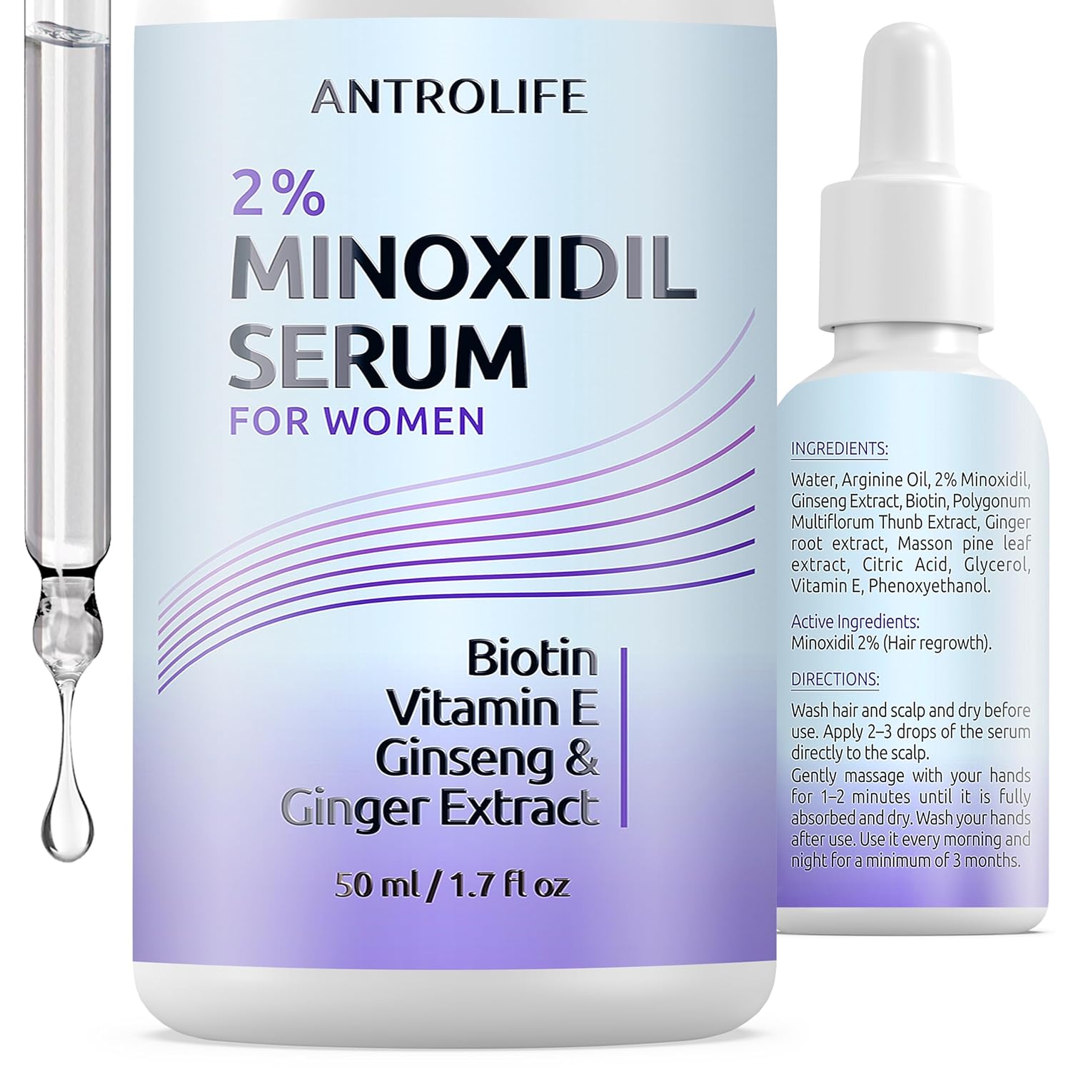 Minoxidil for Women 2% - Hair Growth Serum Women + Vitamin E, Ginseng, Ginger Extract, Biotin Hair Growth Serum - Hair Loss Regrowth & Thickening Treatment Helper