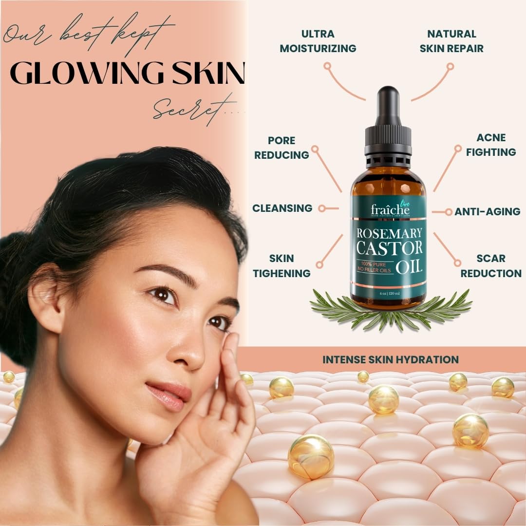 Live Fraiche Rosemary Castor Oil for Hair Growth 4 Ounce - Cold Pressed Castor Oil and Rosemary Oil for Damaged Hair to Reduce Hair Loss