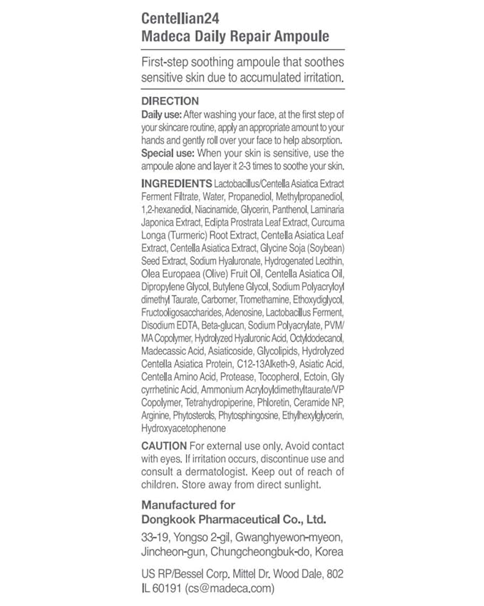 Centellian 24 Madeca Daily Repair Ampoule (Daily Soothing, 1.69fl oz) - Soothing & Hydrating Facial Serum for Sensitive Skin, Skin Barrier Repair & Fast Absorption, Korean Skin Care