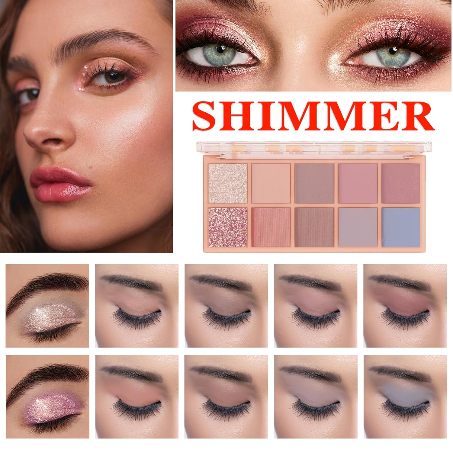 10 Colors Makeup Naked Eyeshadow Palette,Nude Matte Shimmer Eyeshadow Palette,Natural Glitter Pigment Eye Shadow Pallete Set Long Lasting & Waterproof Smokey Eye Professional Beauty Makeup Kit #8