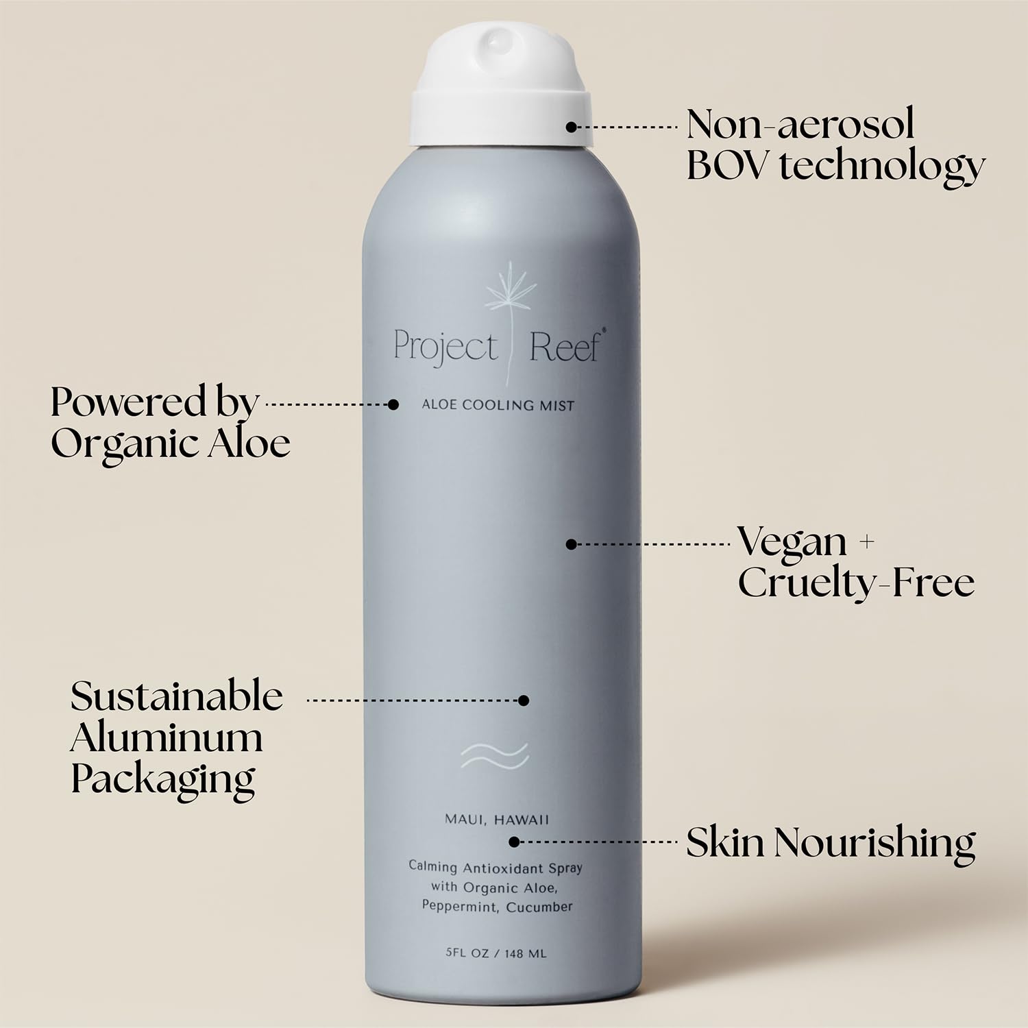 Project Reef Non-Aerosol Aloe Cooling Mist – Vegan, Ocean Friendly & Hydrating After-Sun Spray with Organic Aloe Vera, Peppermint & Cucumber – Natural Sunburn Relief & Daily Skin Refreshment, 5 fl oz