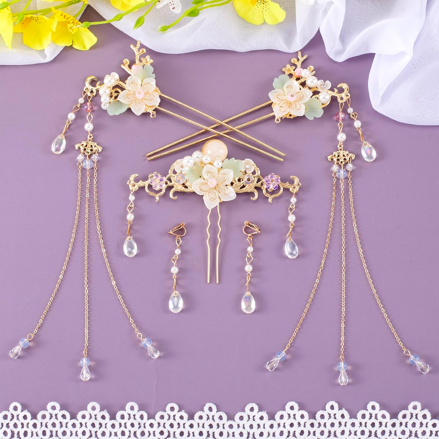 - 【Hanfu Style】Inspired by traditional Hanfu fashion, these chinese bridal hair accessories are ideal for those who appreciate timeless beauty and culture.
