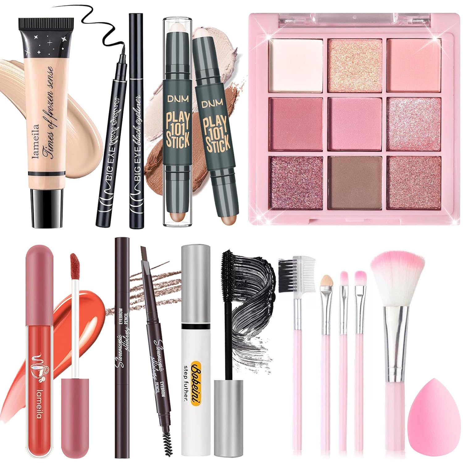 - [Great Quality] Every product in this makeup set is the high-quality makeup for the makeup novice, high color, waterproof makeup, you deserve to have. With a makeup set, you can easily create a clear and bright full face look