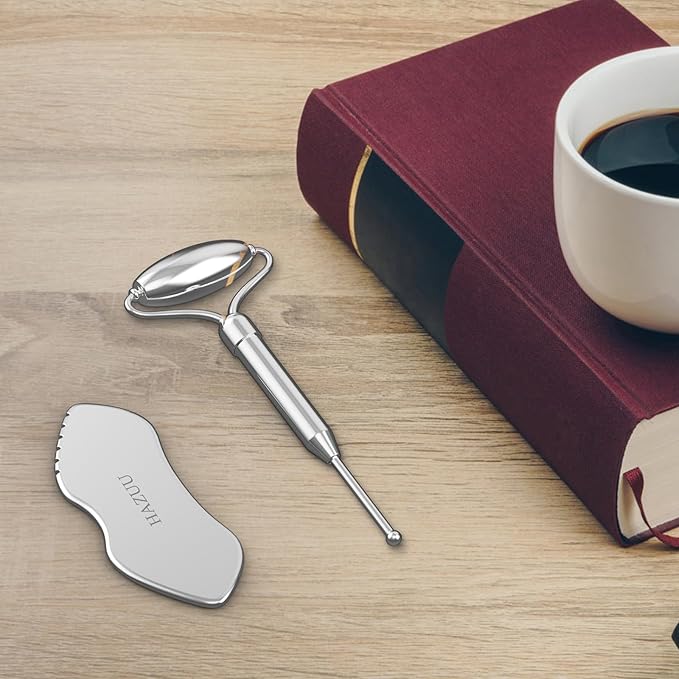 Stainless Steel Gua Sha Face Rollers&Acupuncture Pen - Metal Roller for Eyes & Neck, Anti-Aging Facial Massage Tools, Gua Sha Facial Tool Kit (JGS-2)