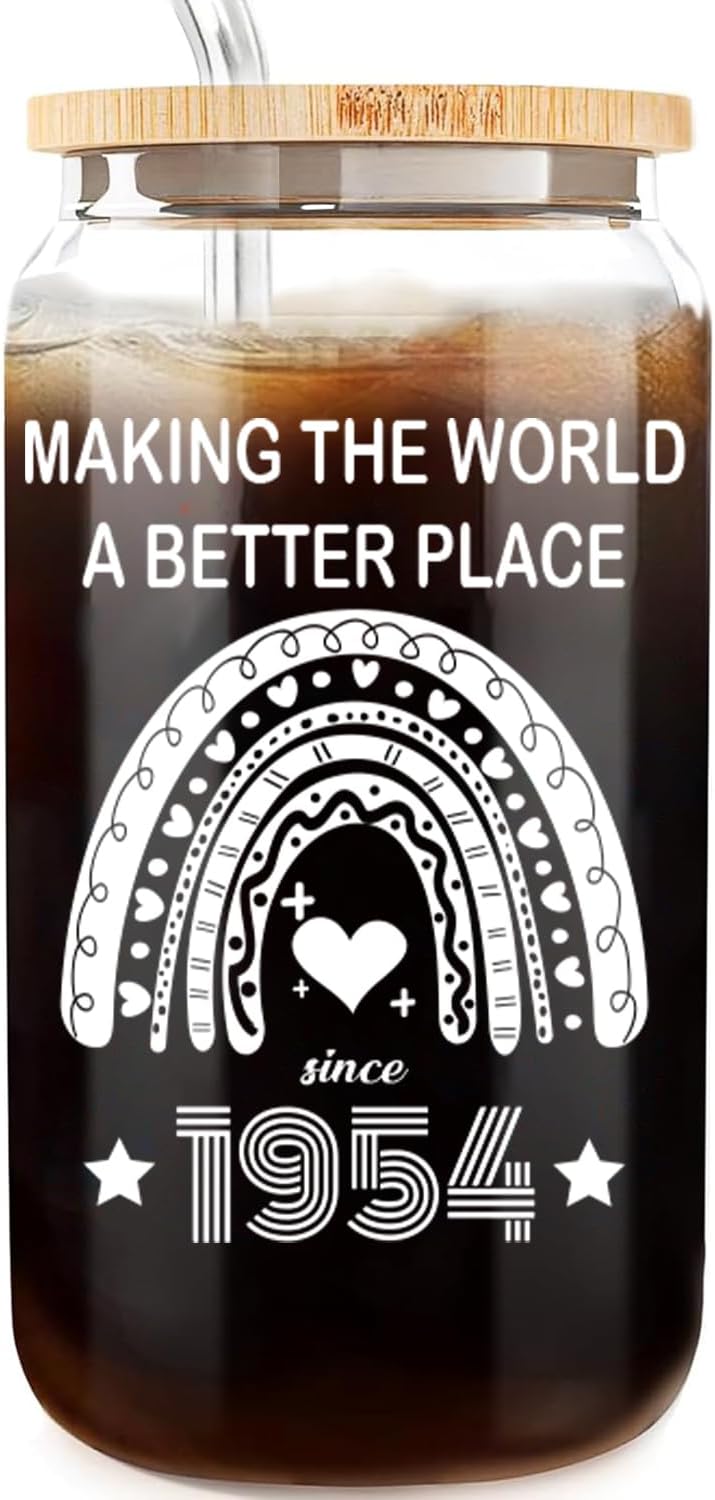 70th Birthday Gifts for Women 70 Year Old Birthday Cups for Her 1954 Birthday Present Happy 70th Birthday Glass Cups with Lids and Straws 70th Birthday Gifts Ideas Anniversary Party 16 Oz Can Glass