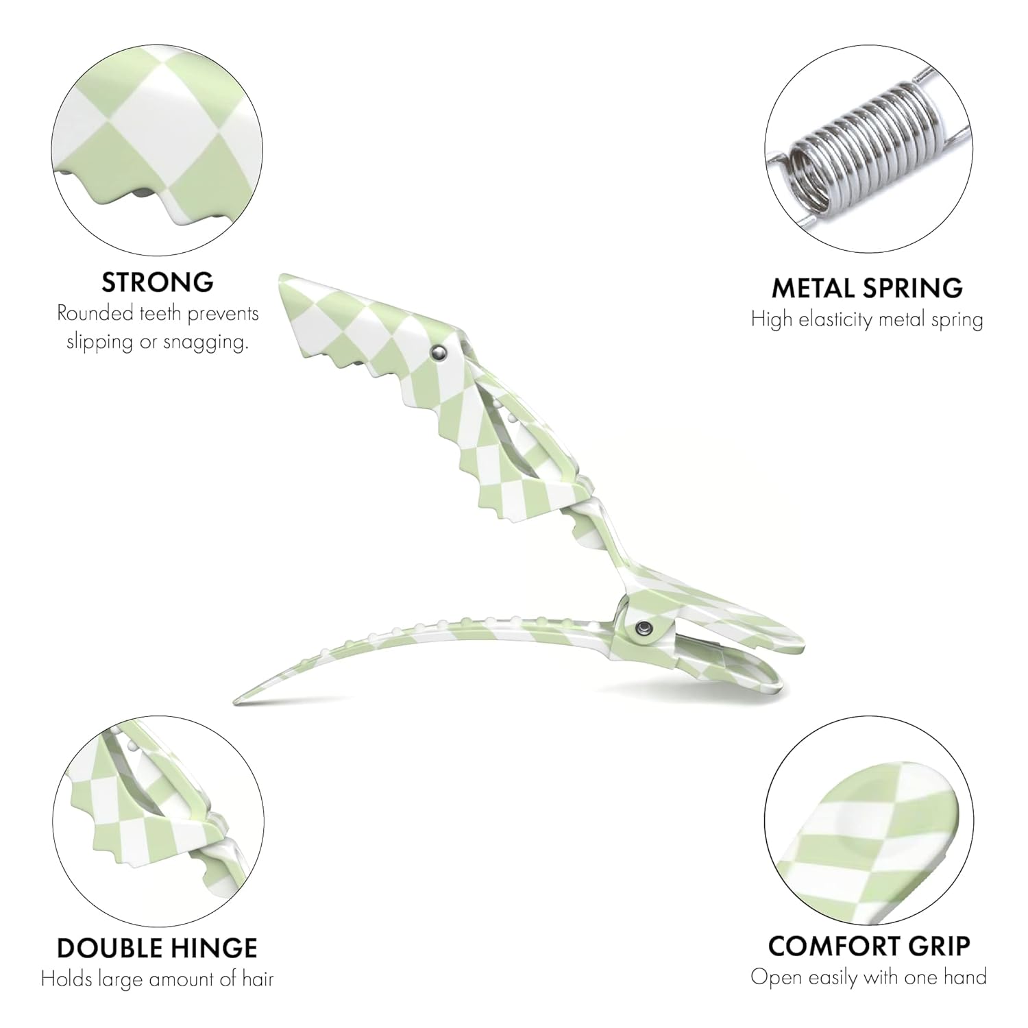 FRAMAR Alligator Clips For Hair Styling – Professional Alligator Hair Clips For Women, Checkered Hair Clip For Women, Checkered Hair Clips For Styling – Matte Firm Hold Without Slipping – 4 Pack