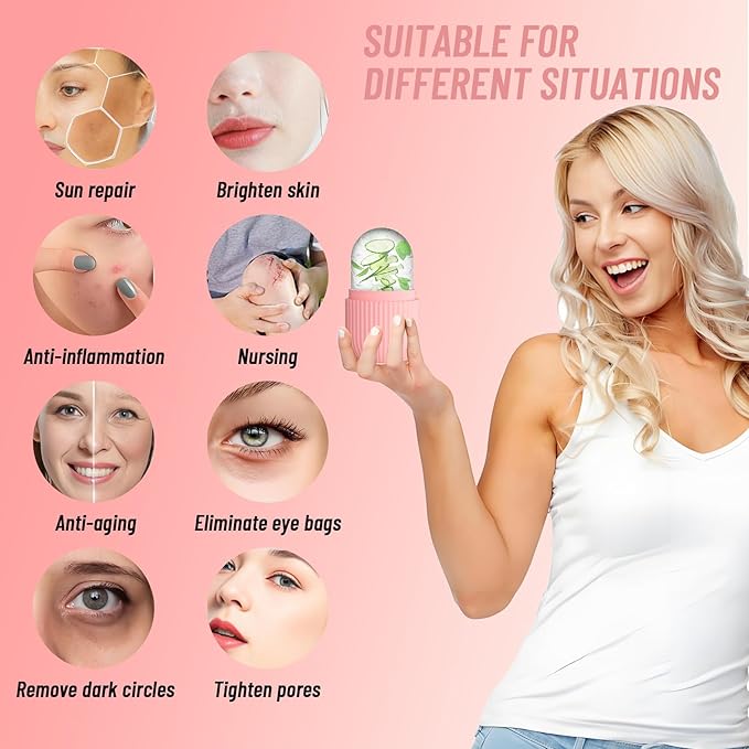 - 【Cold Therapy & Improve Skin】Facial ice rollers are very useful for improving skin conditions. You can use whitening lemonade, green tea, relieve the pressure of cucumber water, coconut milk, etc. to improve the skin, thereby creatively customizing recipes according to your skin needs.