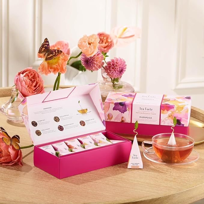 Tea Forte Mariposa Premium Tea Petite Presentation Box Tea Gift Sampler, 10 Count, 1 of Each Variety Individually Wrapped Handcrafted Pyramid Infuser Bags