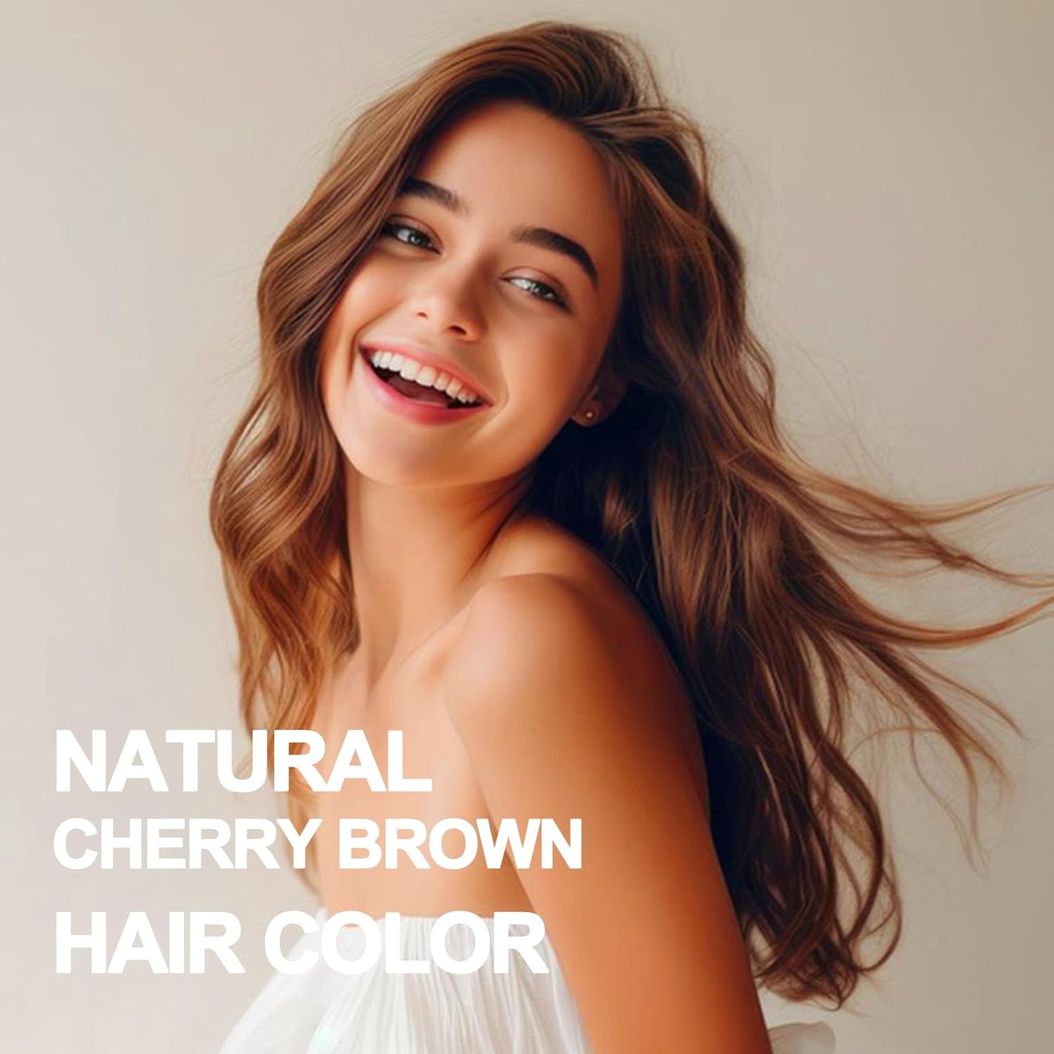 - CREATE NEW HAIR COLOR STYLE: Natural extracts can effectively dye your hair Cherry Brown in minutes. Just keep your hair dry, and apply the shampoo from hair roots to tips, wait 10-15 mins and wash it cleanly, the coloring hair effect is natural and charming.