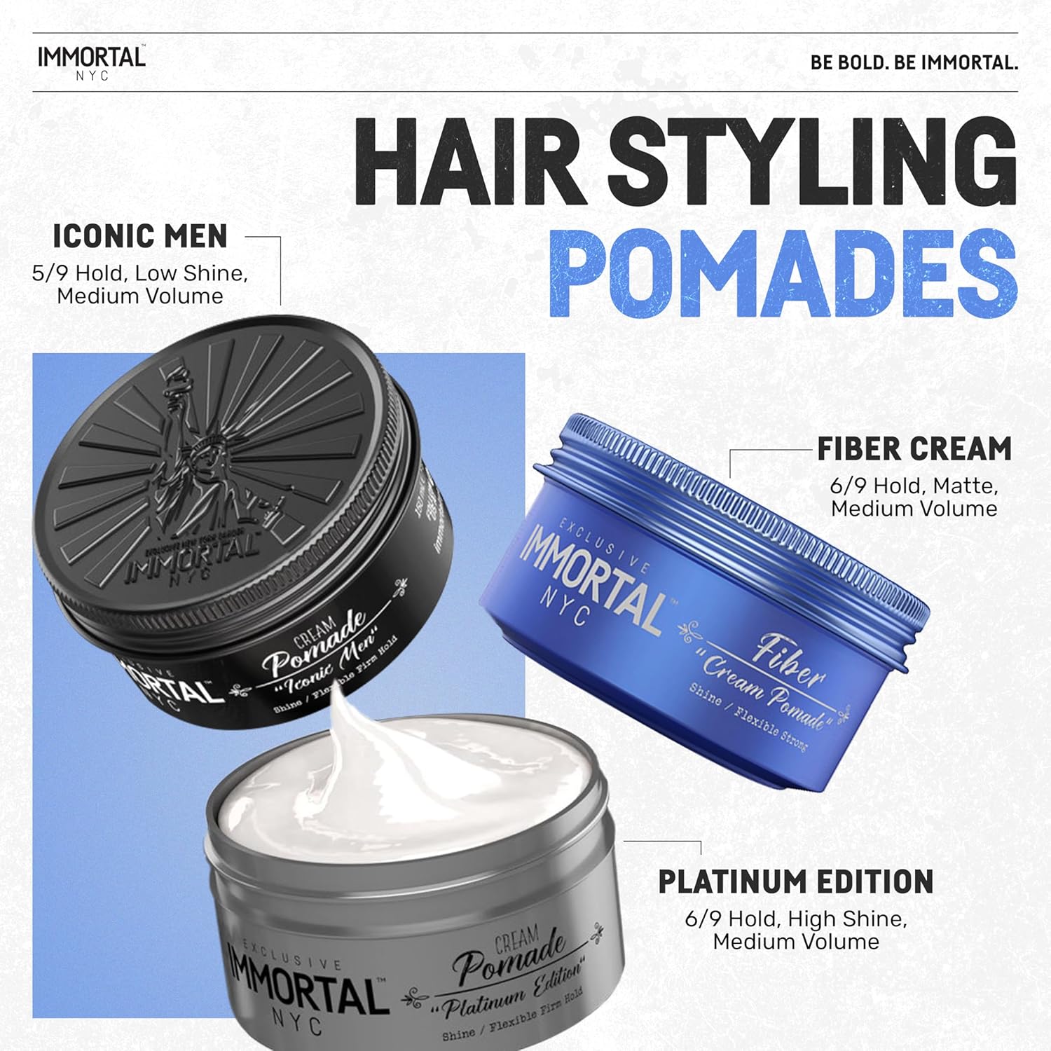 Immortal NYC Fiber Cream Hair Pomade - Flex Strong Hold - Low Shine All Natural Water-Based Cream Pomade for Men - No Residue, All Hair Types