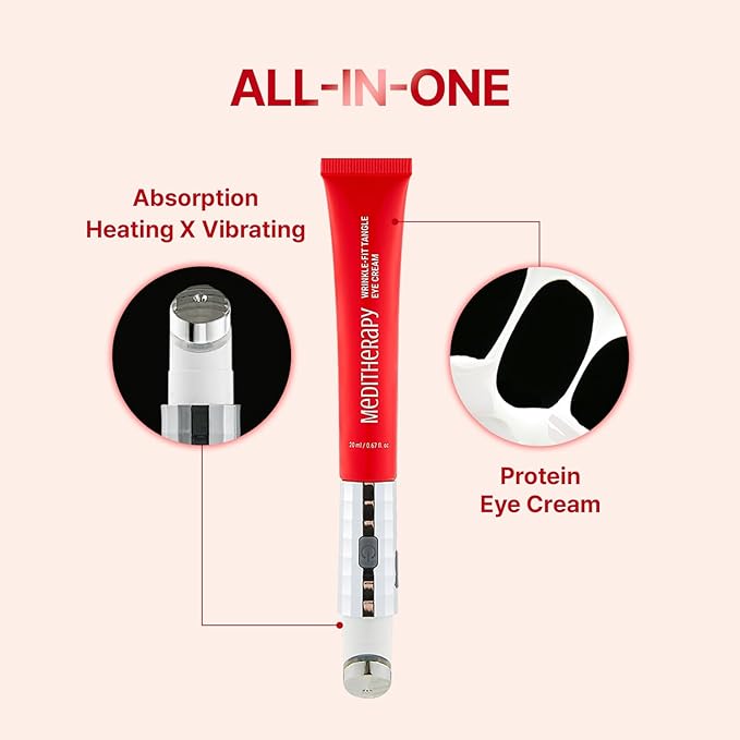 MEDITHERAPY Wrinkle-fit Tangle Eye Cream, Chargable Device Tip + Protein Collagen EyeCream, All-in-One Under Eye Treatment, 0.67 fl oz, Eye Massager (Cream+Device)