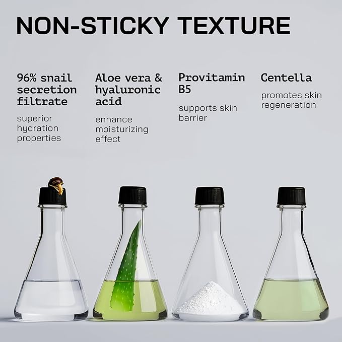 - Special Ingredients : Snail Mucin, Aloe Vera, Centella, Hyaluronic acid