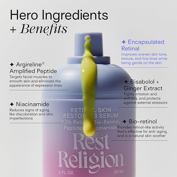 - RETINAL - More potent than a Retinol serum, it enhances skin texture and firmness by stimulating collagen production.