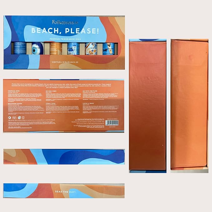 Folkulture Summer Essential Oils for Diffuser for Home | Set of 6 Premium Beach Oil Set | Oil Diffuser Summer Essential Oils for Candle Making Set for Women - Neroli & Grapefruit