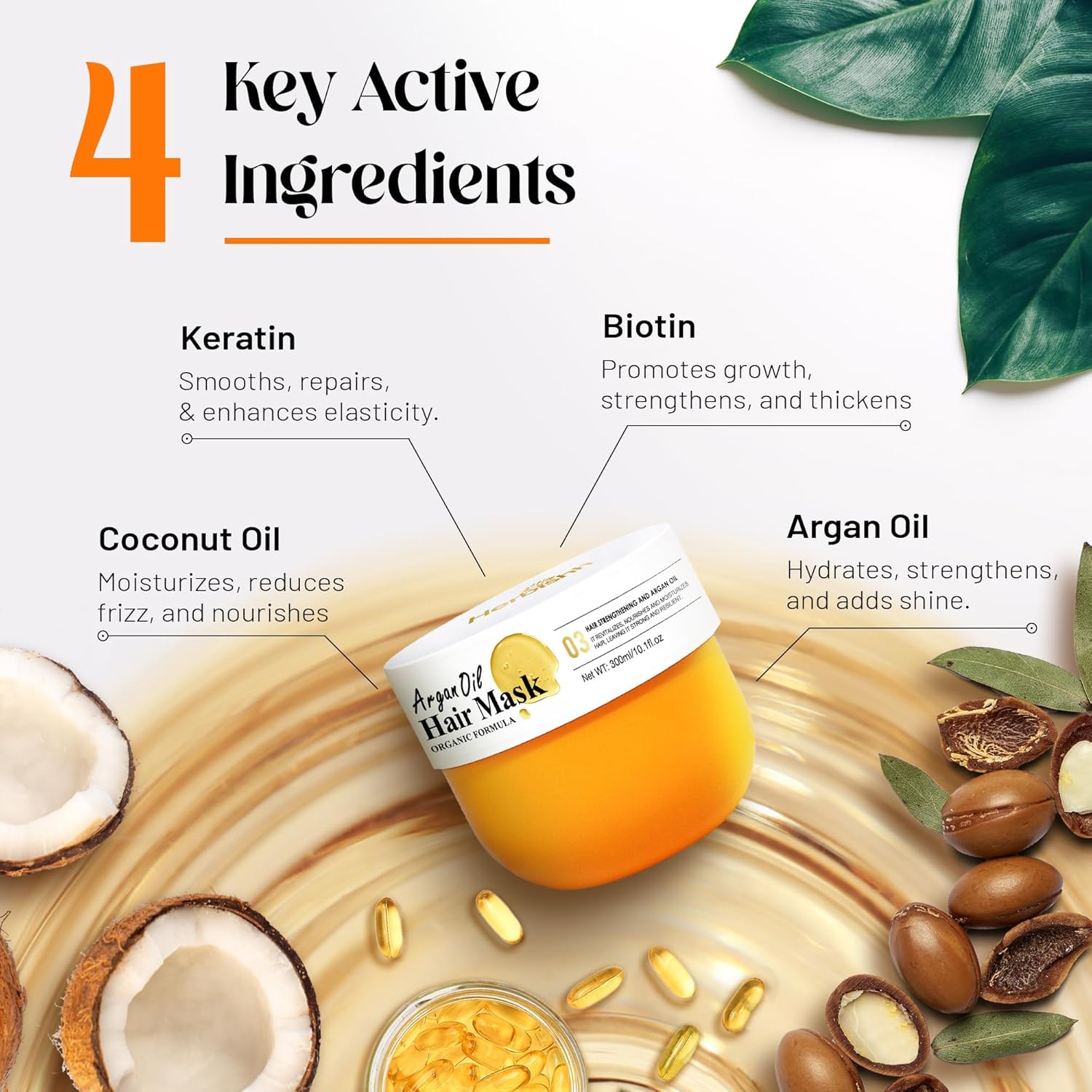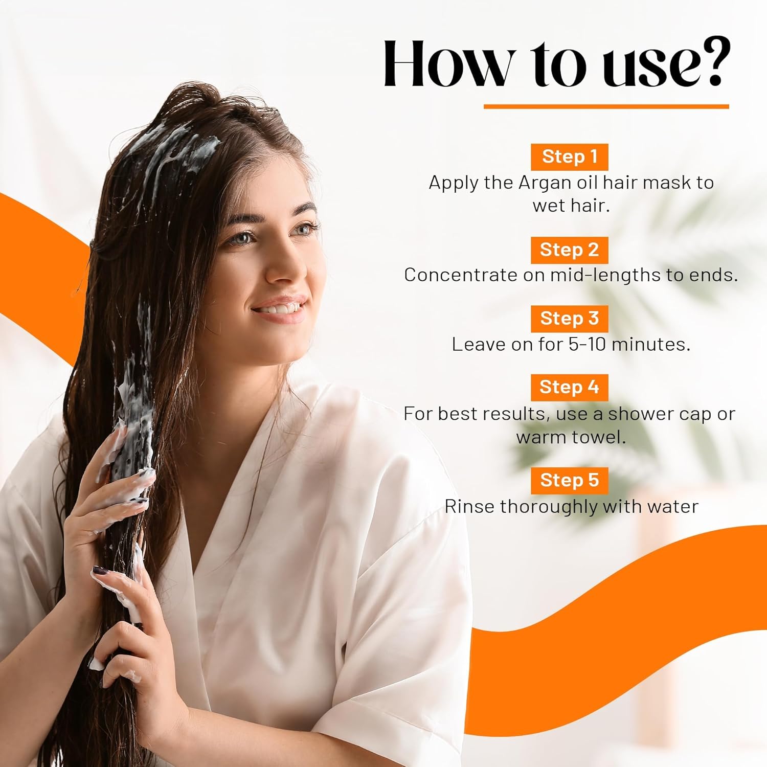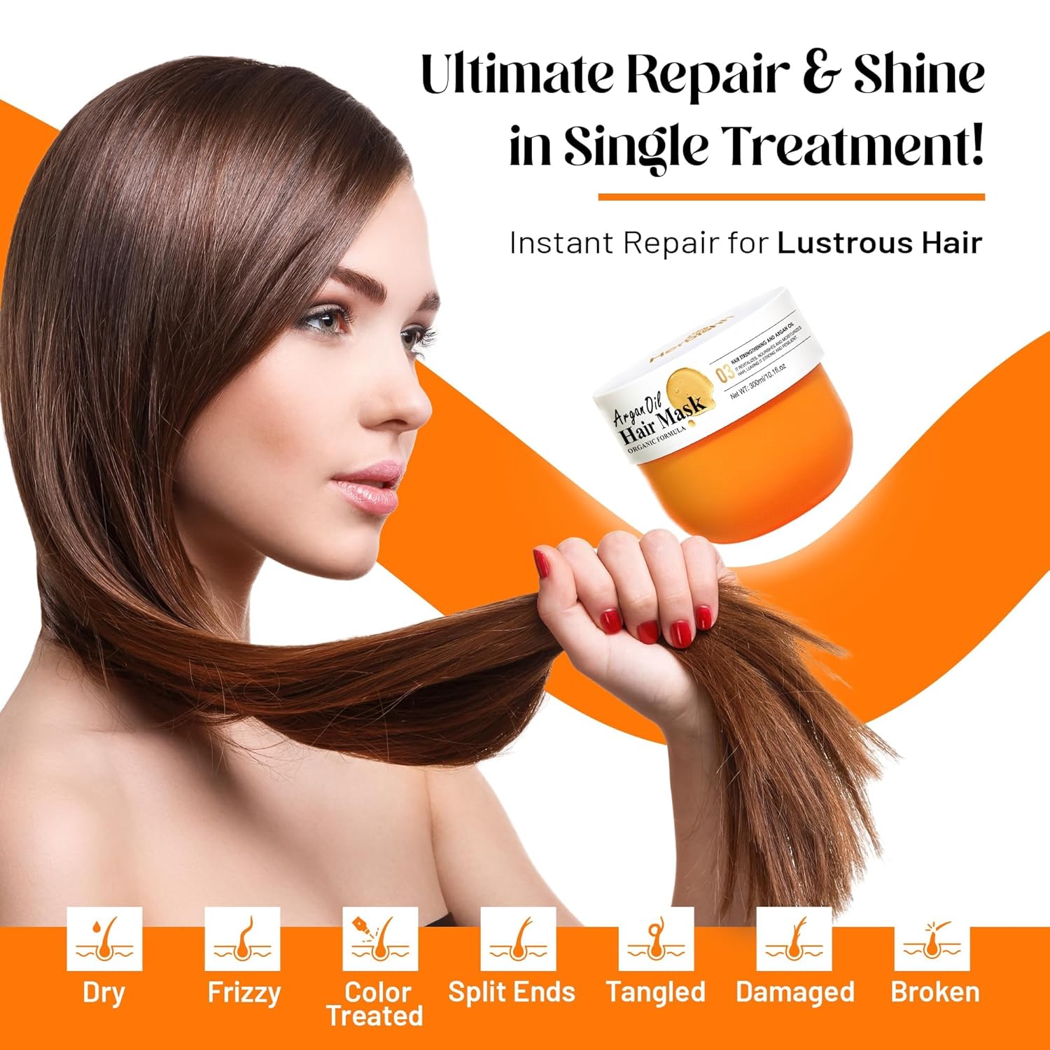 - DEEP HYDRATION & NOURISHMENT: Repair dry, brittle locks with our Moroccan Argan Oil Hair Mask. This advanced formula penetrates deep to revive each strand, reversing damage and restoring natural vitality and shine.
