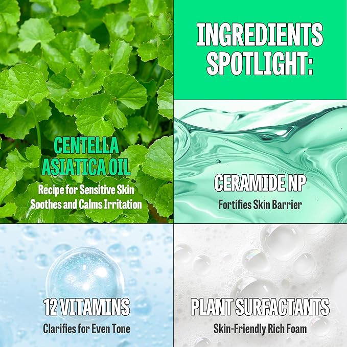 - GENTLE HYDRATION. More than a cleanser, this hydrating face wash transforms from silky oil to soft lather, melting away buildup without disrupting moisture levels. Cica Actives and fermented ingredients work in harmony to soothe and replenish, making it perfect for a gentle, effective cleanse.