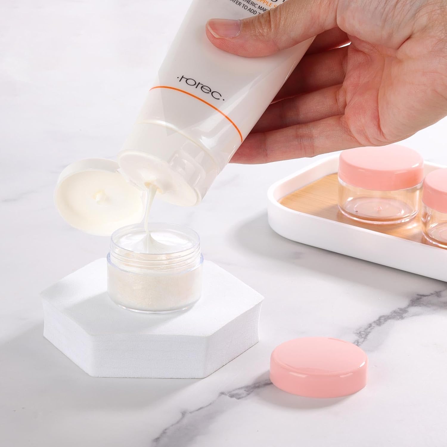 - Quantity: 100 pieces of plastic jars with lids ; Capacity: 15g/ 0.5oz . Perfect for storing lotions, lip balms, toners, creams, acrylic powder, and other beauty aids