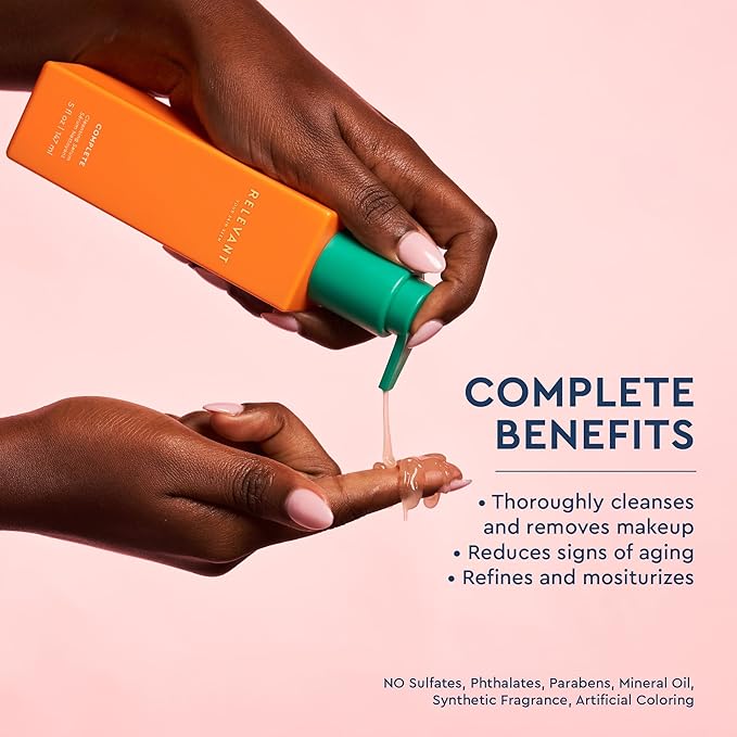 RELEVANT Hydrating Face Wash Serum - Daily Facial Cleanser & Makeup Remover Face Wash - Lightweight, pH-Balanced, Anti-Aging, Collagen-Boosting, Gentle Exfoliating - Vegan & Cruelty-Free Skin Care