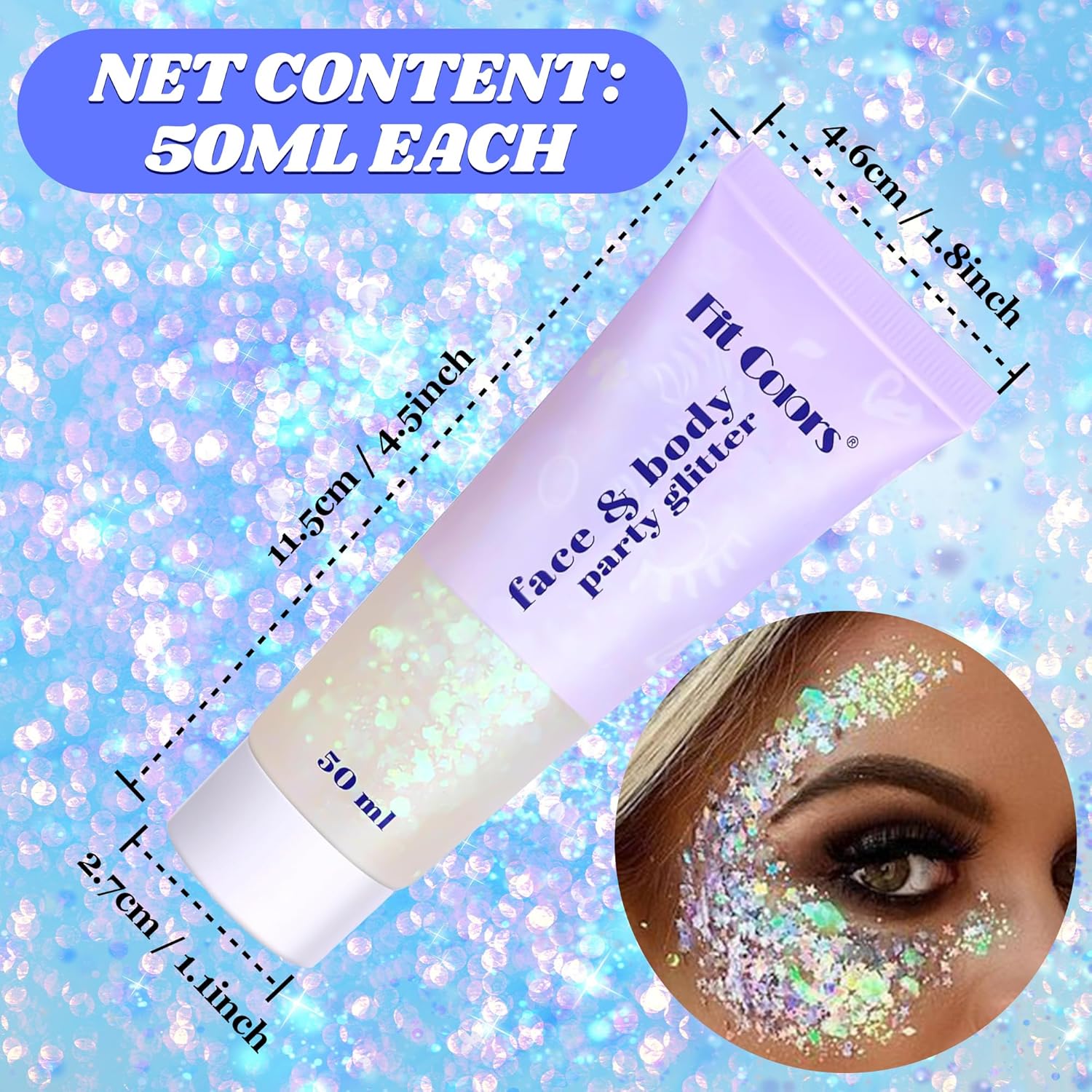 - 🌈【Body Glitter】Our glitter is a safe, skin-friendly, shiny glitter gel. Suitable for most skin types. Bright in color, easy to apply, and can be used directly without the need for additional glue. Makeup removal requires only cleansing with water; no makeup remover is required. Create super charming makeup with this gel!