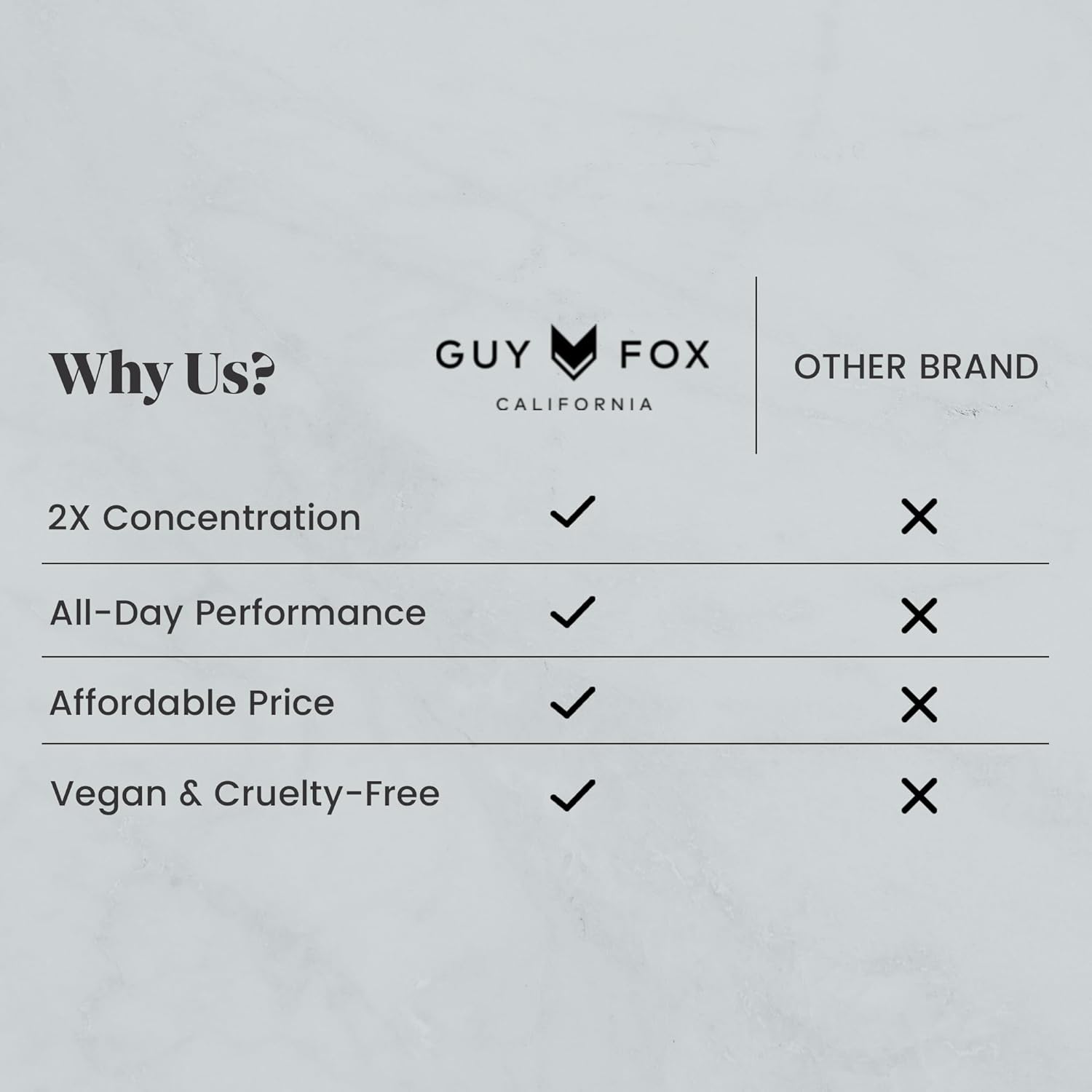 - 2X CONCENTRATION - We teamed up with the best perfumers in the game to craft an extrait de parfum that's 2X concentration. 2-3 sprays and it lasts all day. No re-ups needed.