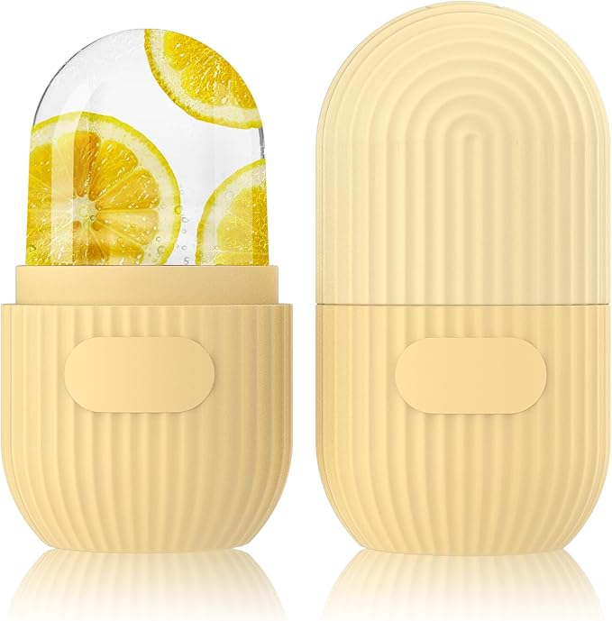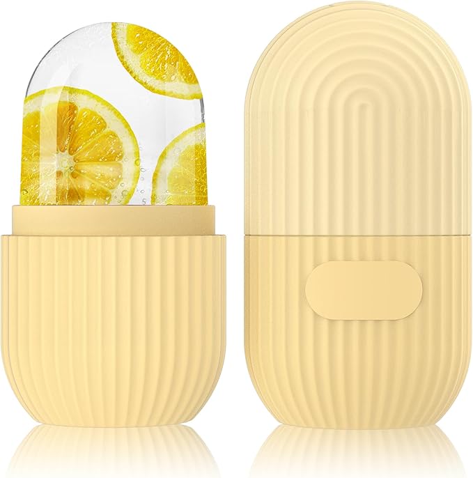 GeeRic Ice Face Roller, Silicone Ice Facial Rollers, Cube Face Contour for Eyes Neck, Beauty Facial Massage Roller Remove Dark Circle Pore Shrink Face Roller Skin Care Tools (Yellow)