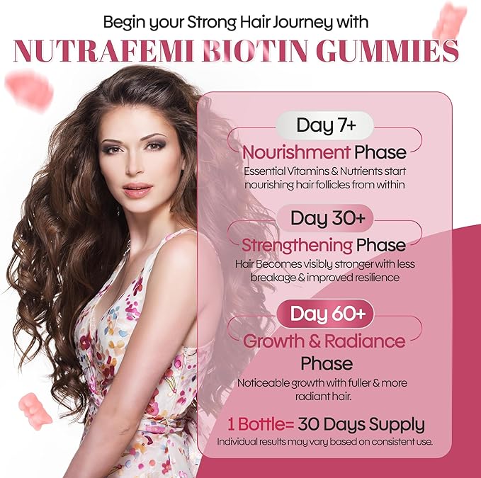 - ๐ Boosts Hair, Skin & Nails โ These hair vitamin gummies not only help grow stronger hair but also promote glowing skin and stronger nails. With a potent blend of Biotin and other vital nutrients, they support overall beauty and wellness, so you can feel and look your best.