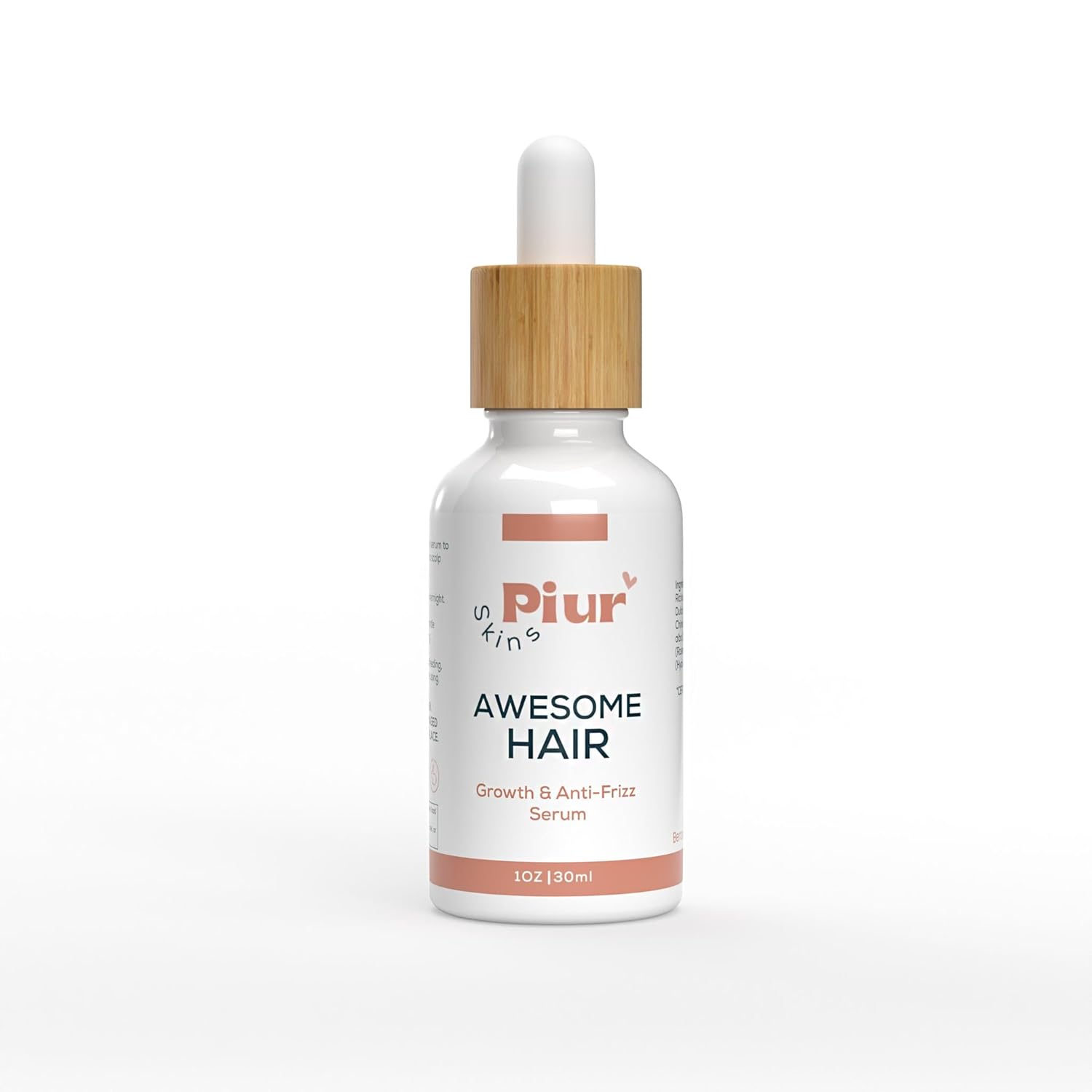 Piur Skins Awesome Hair Growth Serum with Organic Oils & Hyaluronic Acid - Natural Scalp Nourishment for Thicker, Stronger Hair - 30ml, White