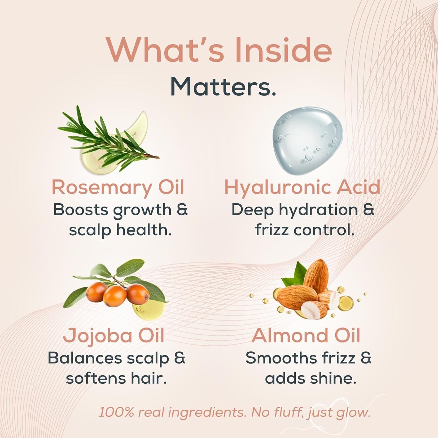- Hydration & Shine: Hyaluronic Acid deeply moisturizes, leaving hair silky and frizz-free.