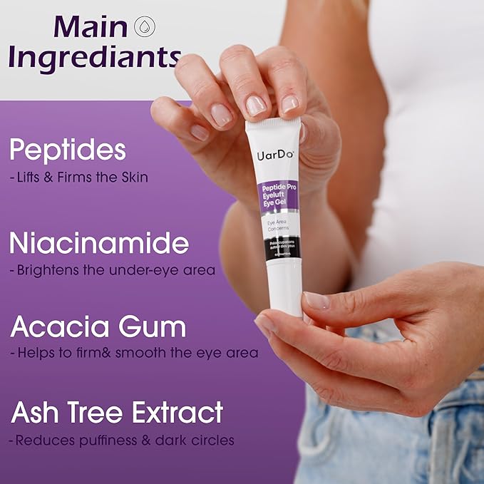 Uardo Peptide Pro Eyeluft Eye Gel 0.5 Fl Oz/ 15ml - usn113 | For All Skin Types | Targets Signs of Aging | Helps with Puffy Eyes & Wrinkles | For Women and Men