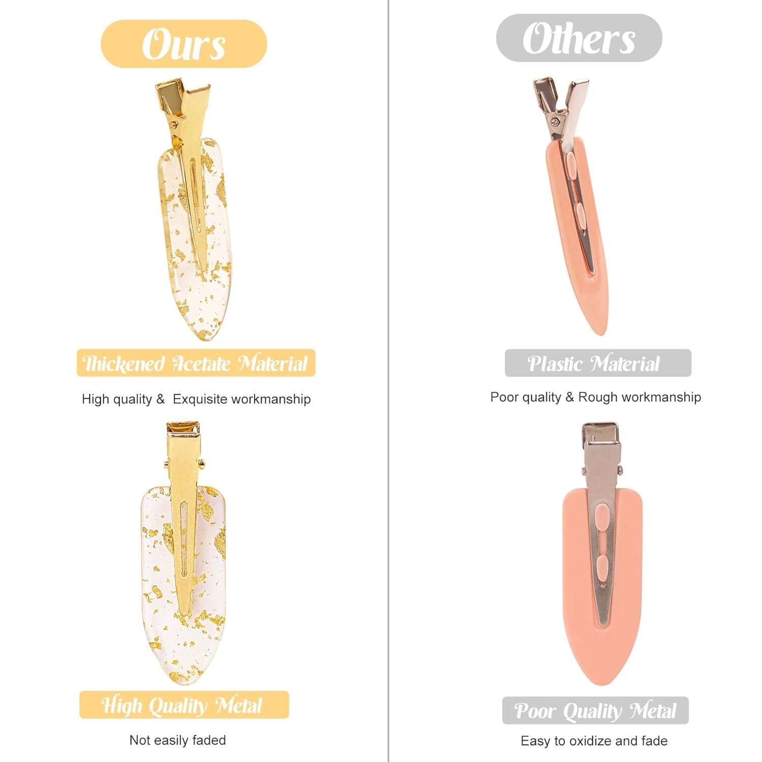 - Creaseless Hair Clips High Quality Material:The makeup hair clips are made of high-quality resin and durable stainless steel, which are properties of light, high hardness and bright colors and not easy to fade, discolor and can be used for a long time