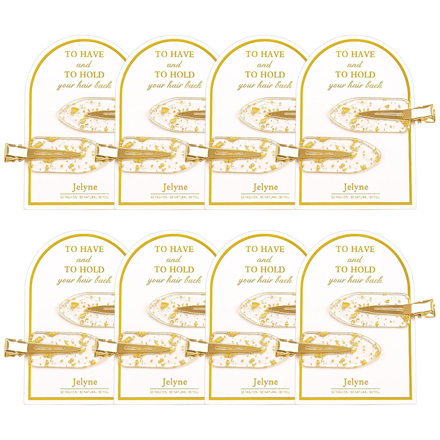- Cute No Dent Gold Glitter Hair Clips Design:the bridesmaid hair clips are designed in gold glitter,without teeth which won't leave crease on your hair even after long time of wearing,the best choice for styling and makeup,each pair of the setting clips is attached to a nice-looking card and tucked into a small cellophane bag are printed with words "To have and to hold your hair back", gold color makes them look more elegant and attractive,the great bridesmaids gift choice