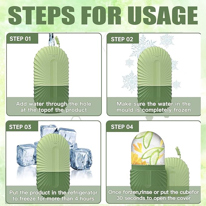 - 【DIY SKIN BEAUTY RECIPES】Have fun making your own beauty recipes with our facial ice mold and enjoy DIY recipes. Examples include using lemonade for brightening, green tea for reducing inflammation, cucumber water for minimizing swelling, mint leaves for a refreshing sensation, coconut for enhancing skin, and more.