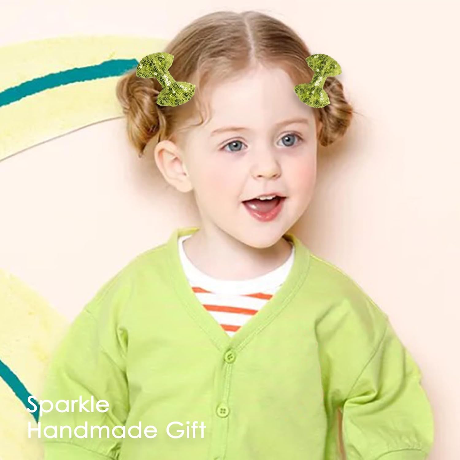 KISZU 3 Inch Glitter Hair Bows Clips, Sparkling Sequin Little Bow HairPins for Baby Girls Children Teens and Women (Apple Green)