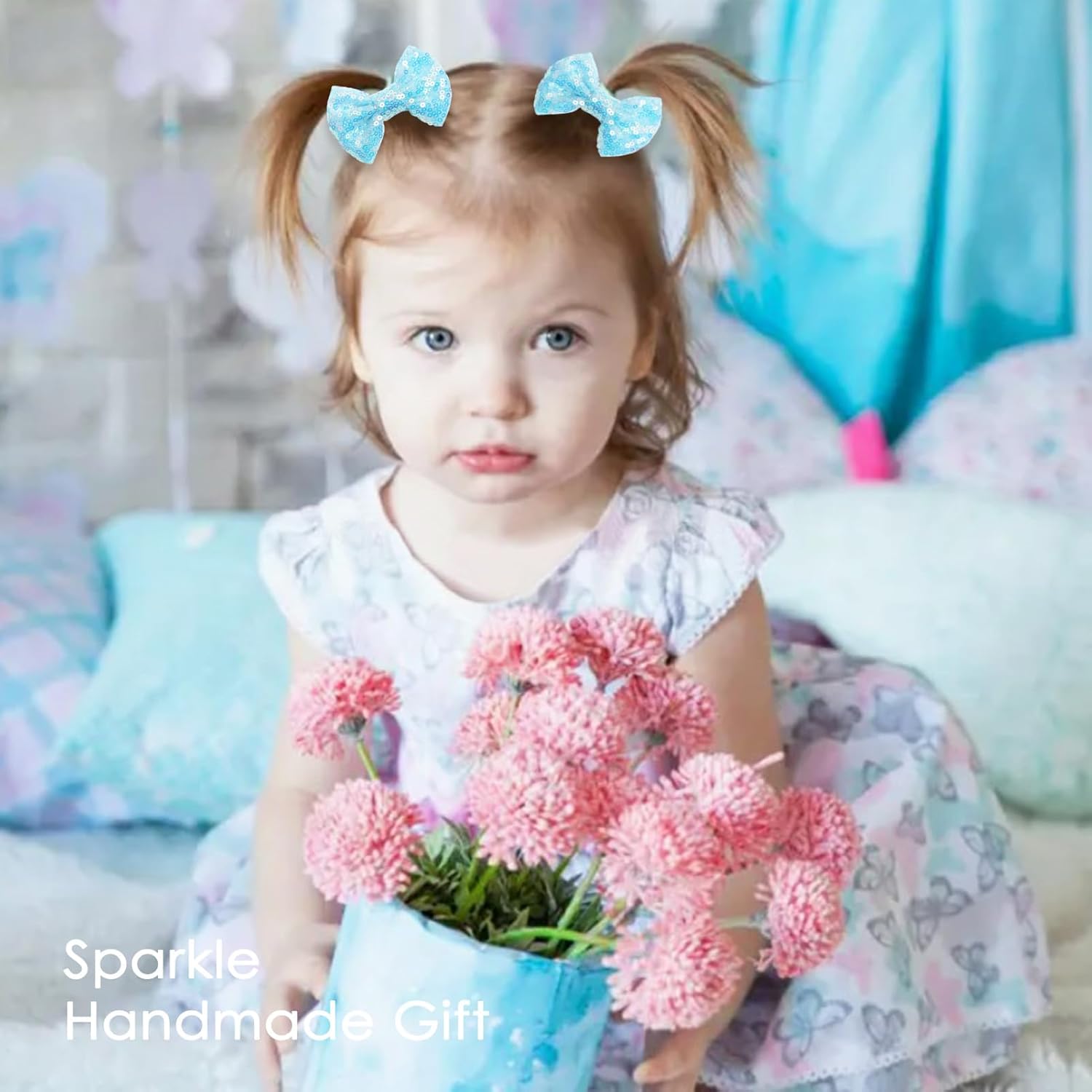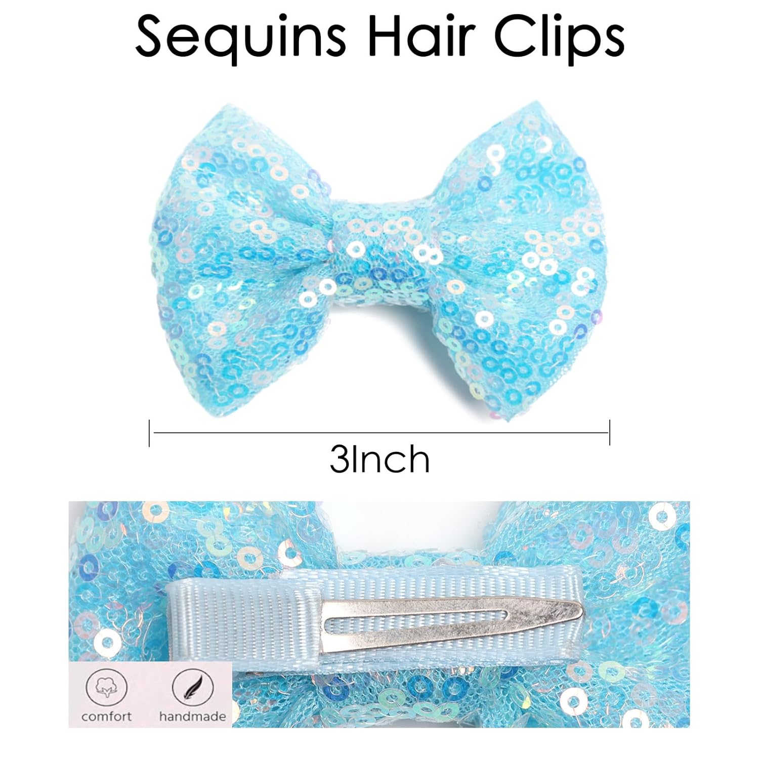 - Baby Hair Clip Size: A pair of 3 inch sequin color bobby pins. The bows are handmade by treasure mothers from the countryside, breathable, sweet and ready to use. The girl bows are fit for girls, toddlers, kids and children.
