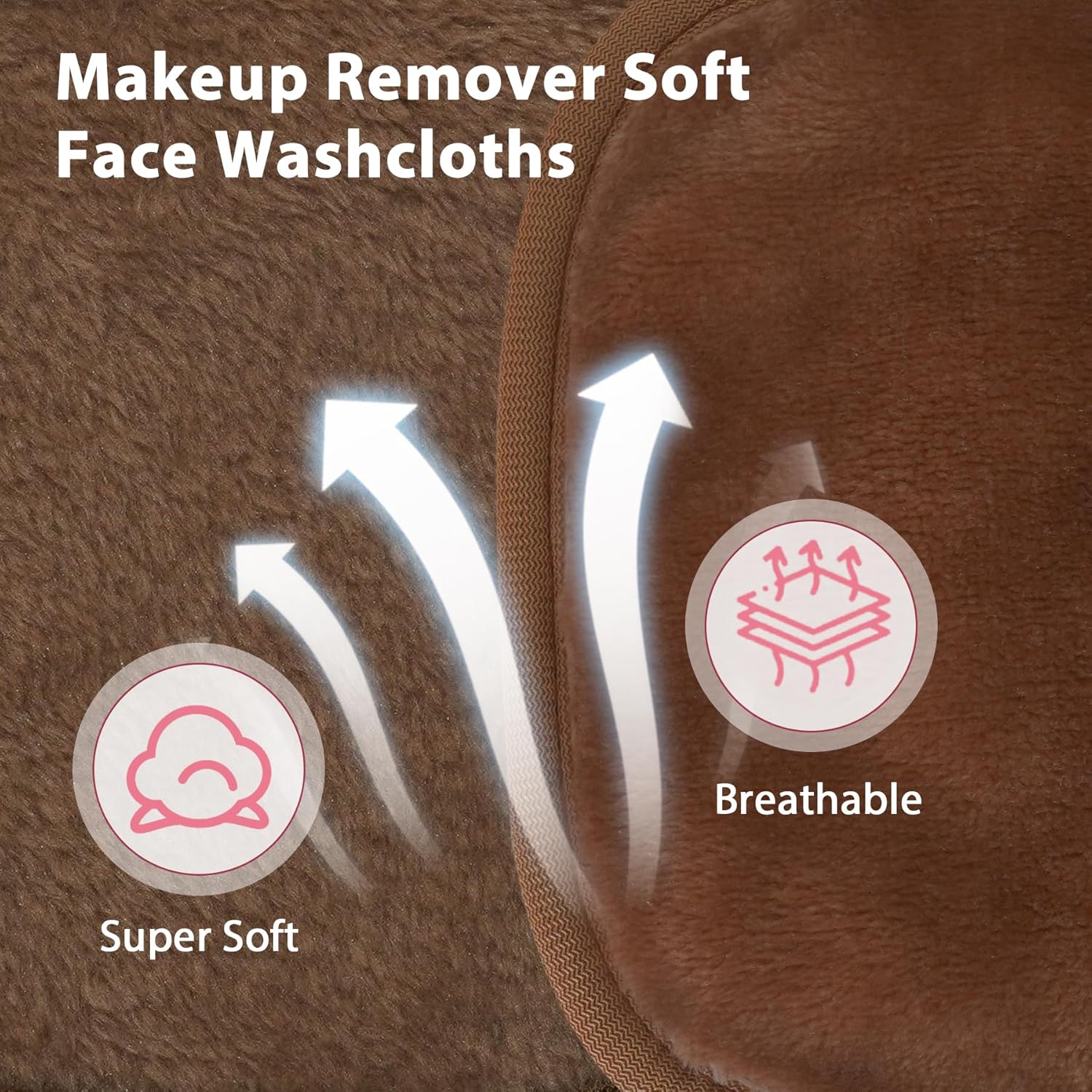 Makeup Remover Cloth, 6" x 6" Make Up Towels Reusable Face Cloth for Washing Face, Makeup Remover Pads Microfiber Face Washcloth with Mesh Bag, Just Water, 12 Pack, Brown