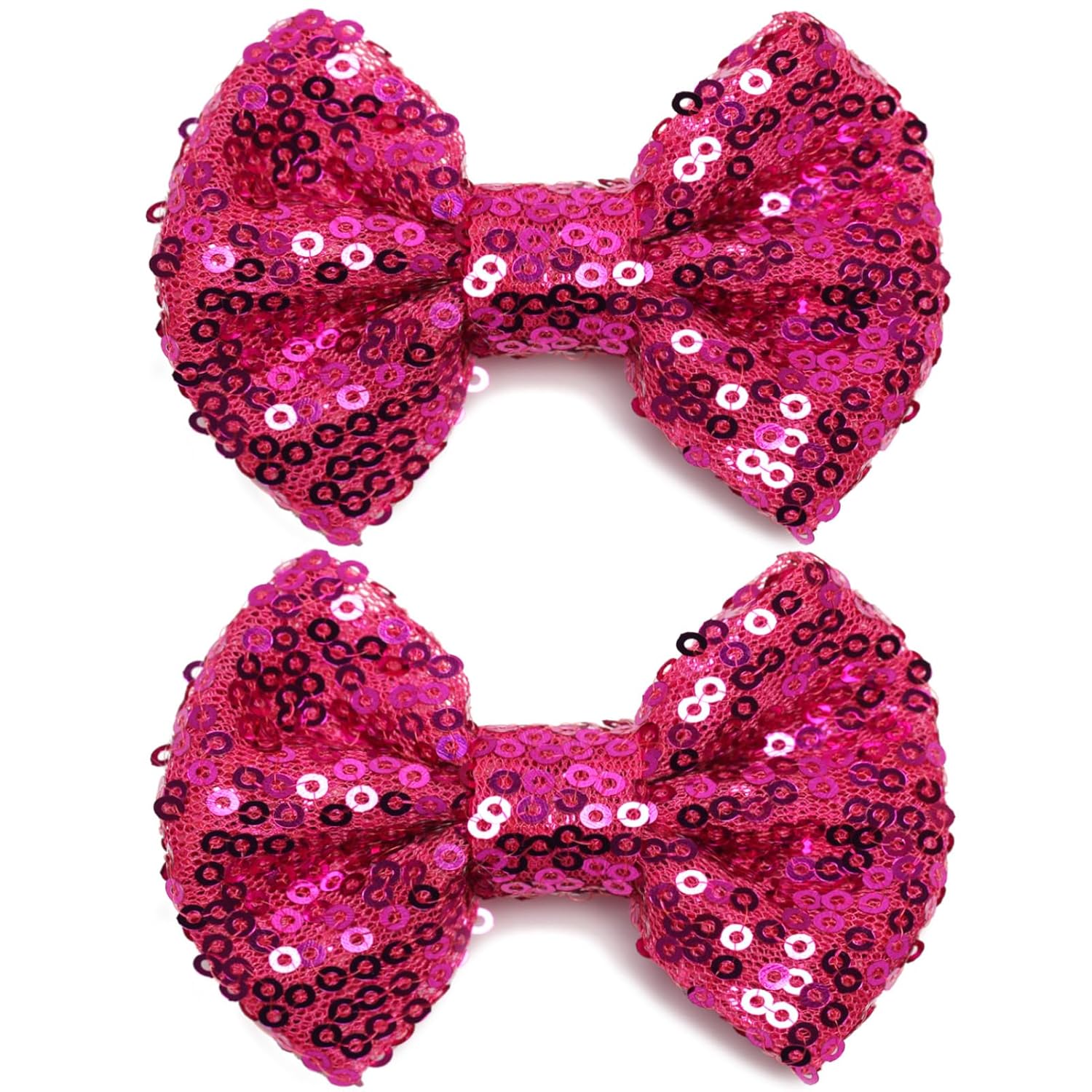 KISZU 3 Inch Glitter Hair Bows Clips, Sparkling Sequin Little Bow HairPins for Baby Girls Children Teens and Women (Rose Red)