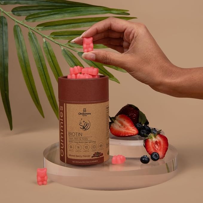 Biotin 5000mcg Gummies with VIT A, B12, C, D3, E + Folic Acid (Vegan Biotin)