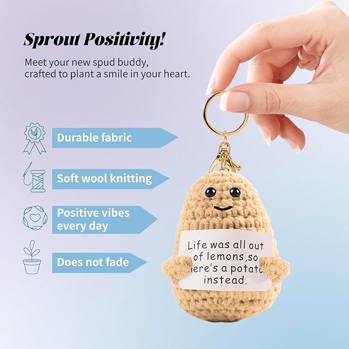 - Pocket-Sized Potato Key Chain:Carry positive vibes wherever you go! Coolest Gifts for Women,Keep joy on your key chain with the positive potato key chain,Emotional Support Pickle, a quirky companion that dances in your pocket,Cute Gifts for Women