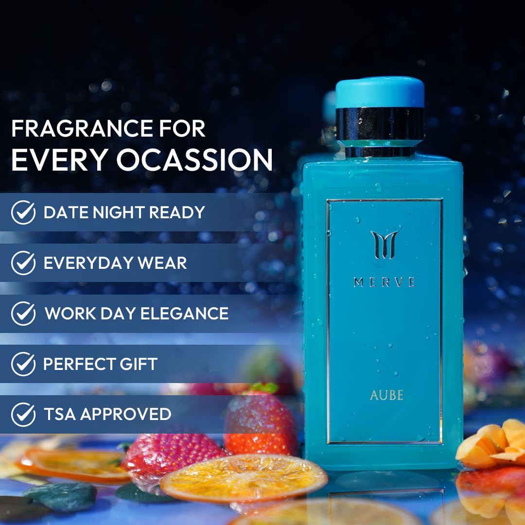 Merve Perfume Aube Premium Long Lasting Fragrance Luxury Scent For Women | Fruity, Musky, Sweet, Powdery, Amber, Citrus, Vanilla | Perfume For Women | 3.4 oz