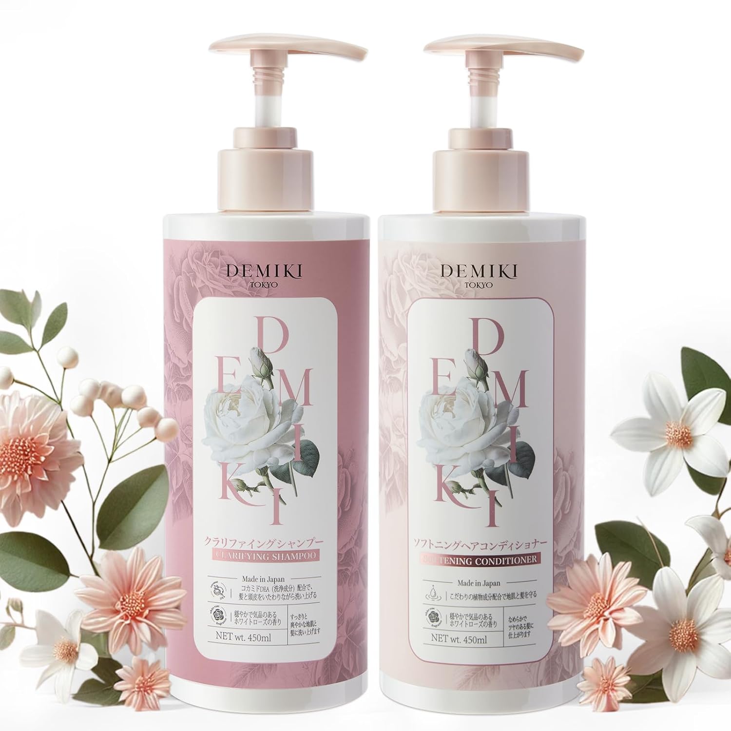 DEMIKI Japanese Shampoo and Conditioner Set for Women,Sulfate Free Shampoo for Oily Hair,Paraben Free, Sulfate Free, Rose Scent,Clarifying Shampoo Moisturizing and Volumizing Natural Hair Care,32oz