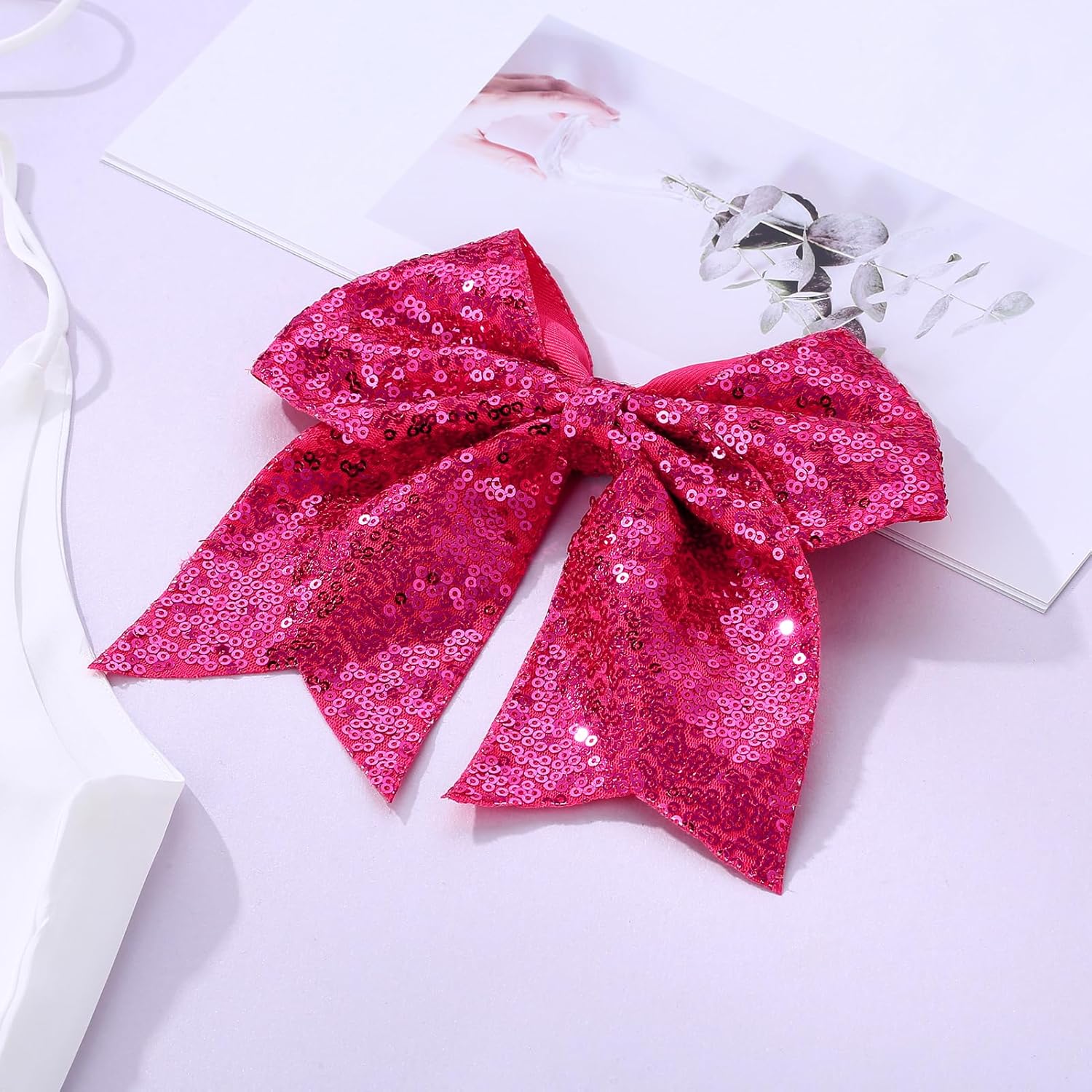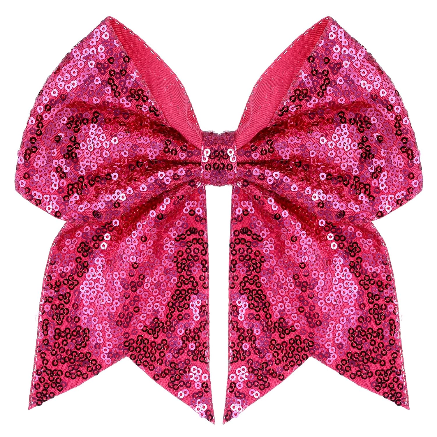Large Big 7 Inch Glitter Bow Clip Sequin Bling Party Hair Accessories for Women Teens Girls Kids 1 Pcs (Hot Pink)