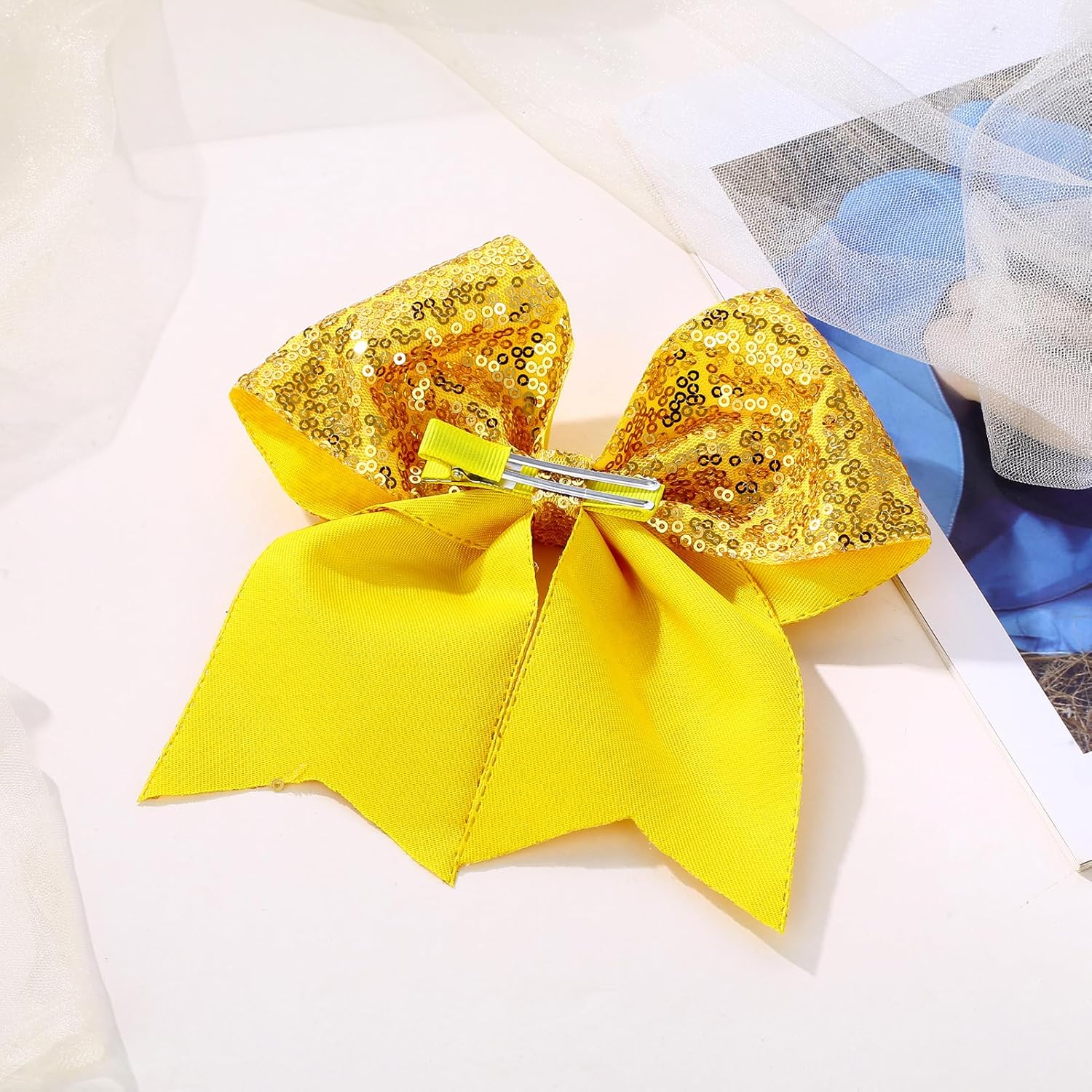 Large Big 7 Inch Glitter Bow Clip Sequin Bling Party Hair Accessories for Women Teens Girls Kids 3 Pcs (Yellow,Green,Blue)