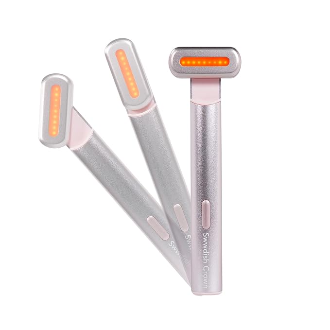 - Red light therapy facial wand utilizes specific wavelengths of red light to penetrate the skin.