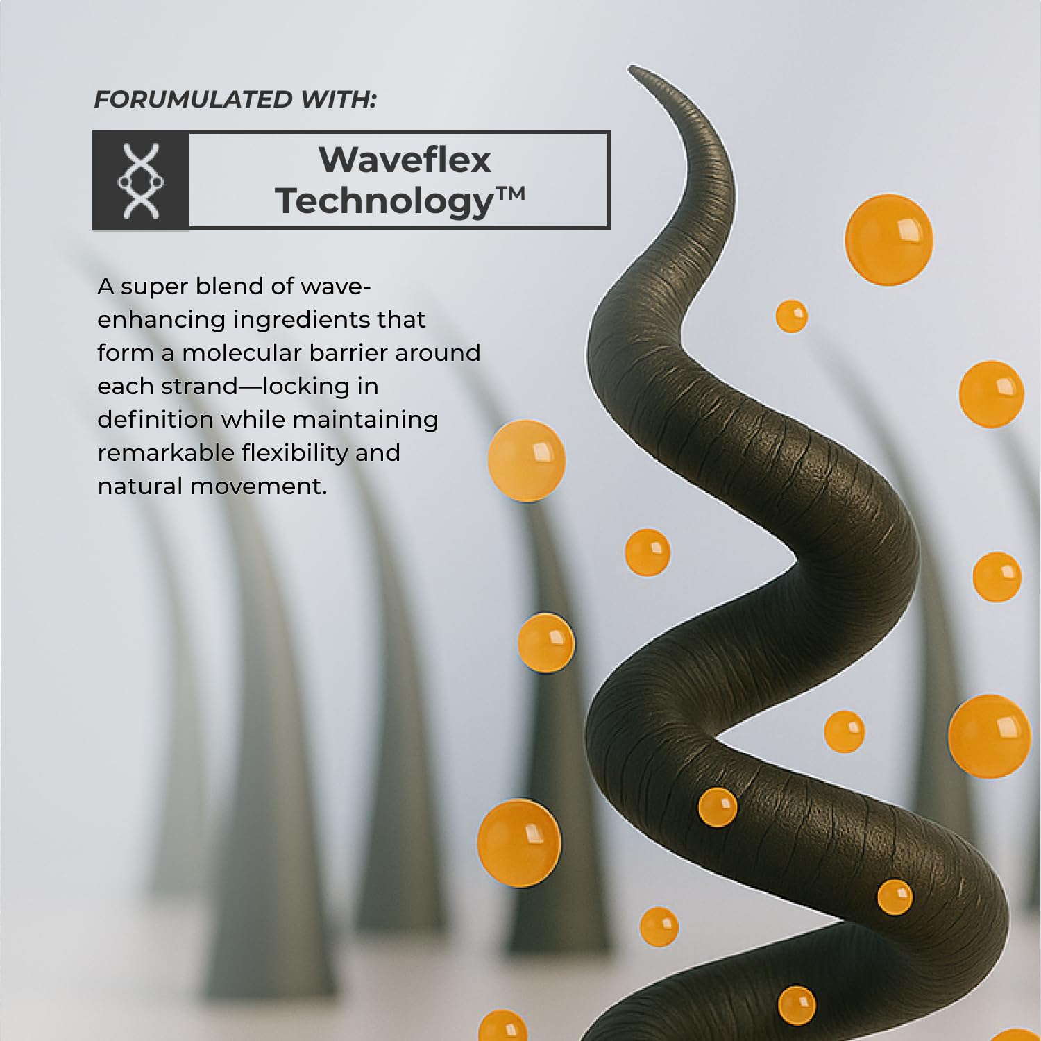 - XMONDO INNOVATION: Waveflex Technology combines a super blend of wave forming ingredients that create a molecular barrier on the hair strand for defined waves with remarkable flexibility. Hemisqualane is a plant-based silicone alternative that creates a protective barrier around the strands to enhance hair’s moisture retention, manageability, and resiliency. Olive Extract, is a natural emollient that improves manageability, detangles, adds shine, and helps protect hair from environmental stressors