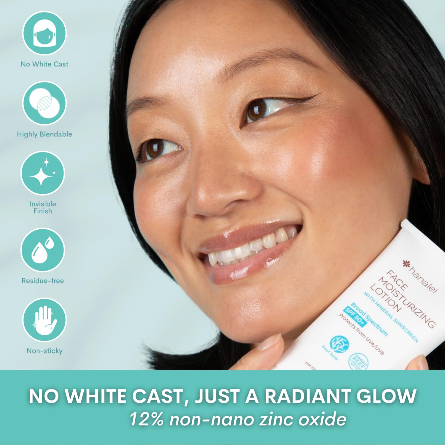 Hanalei Mineral Sunscreen Face Moisturizer SPF 50 – Dermatologist Tested, Zinc Oxide, Vegan, Reef-Safe, Invisible Protection, No White Cast, 3-in-1 Hydrating Primer, Gentle for Sensitive Skin 1.7 oz