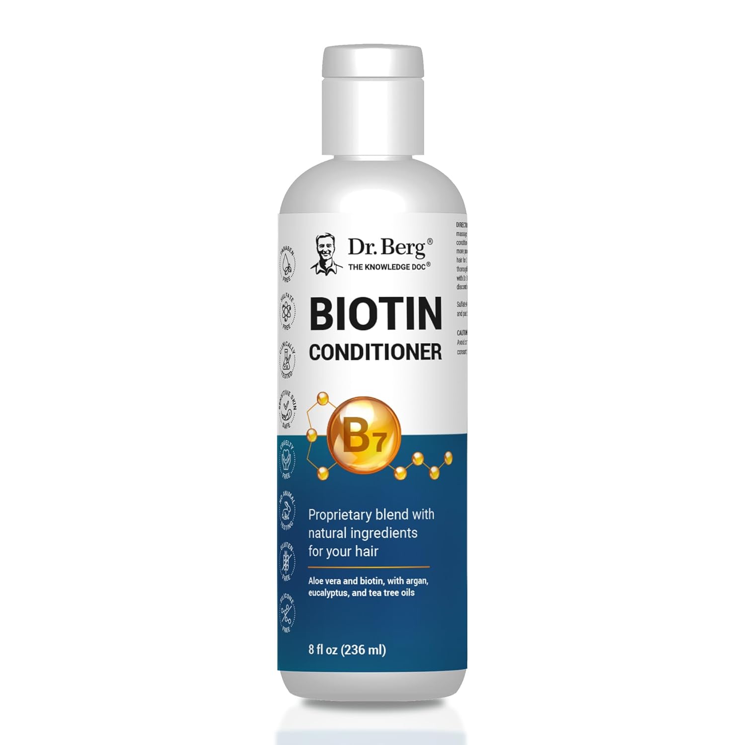 Dr. Berg Biotin Conditioner for Men & Women (Improved High-Performance Formula) - Independently Tested & Certified Paraben- Sulfate- & Silicone-Free - Infused w/Biotin, Argan & Botanicals - 8 Fl oz