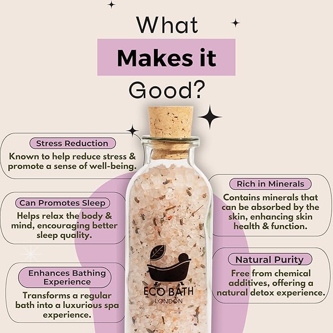 - ECO-FRIENDLY PACKAGING: Packaged in environmentally friendly materials, our Himalayan bath salt makes a thoughtful gift for eco-conscious friends and family. Enjoy the benefits of natural, sustainable products with Eco Bath London.