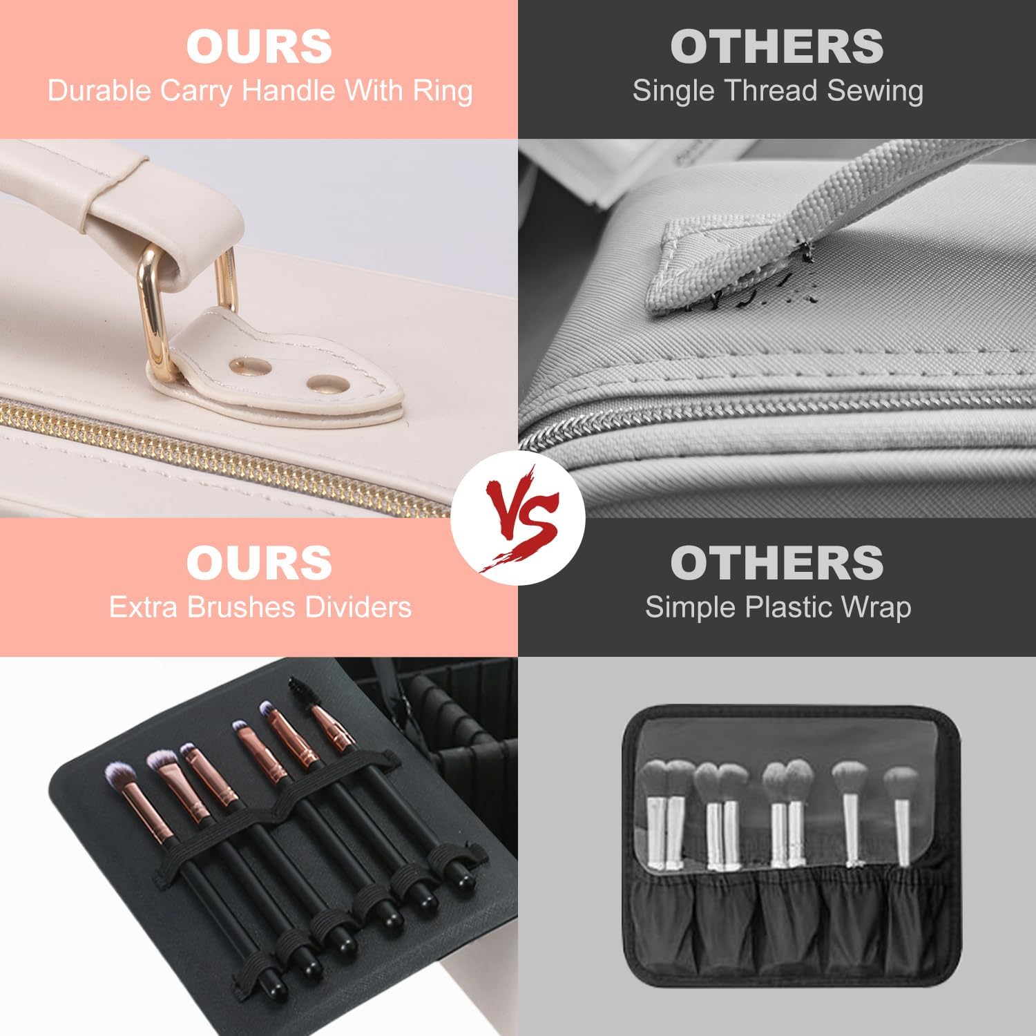 - Flexible and Large Storage Space:Reasonable design makes the makeup bag easy to carry, not only can you store cosmetics and makeup tools, but also jewelry, electronic accessories, camera accessories, toiletries, etc. Removable EVA sponge divider Can DIY the space you need to meet your needs. Can accommodate a variety of sizes of cosmetics and makeup brushes. Which can well protect the cosmetics inside, ensure no breakage or leakage, and also keep them clean and dry.