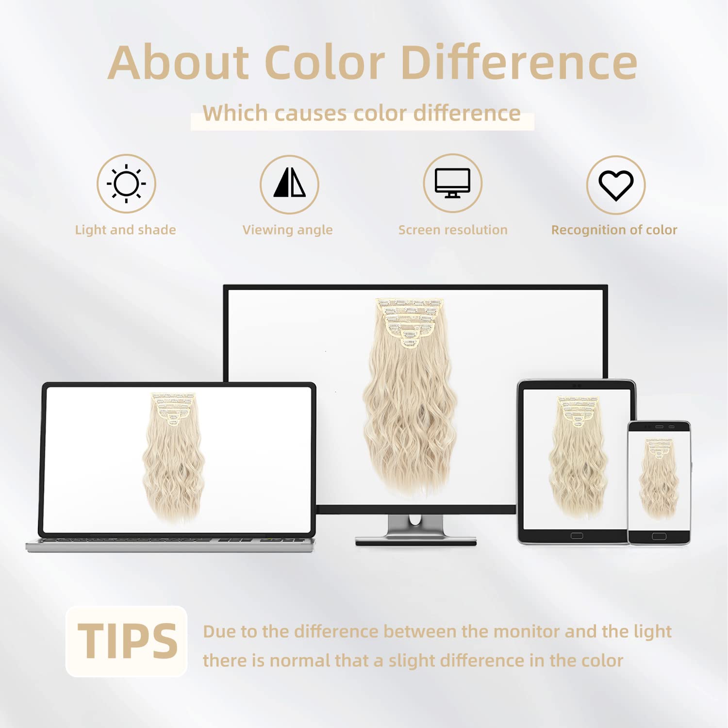 Clip in Hair Extensions, 6 pcs Natural & Soft Hair & Blends Well Hair Extensions, Dark White Lonng Wavy Hairpieces(20inch, 6pcs,Dark White)