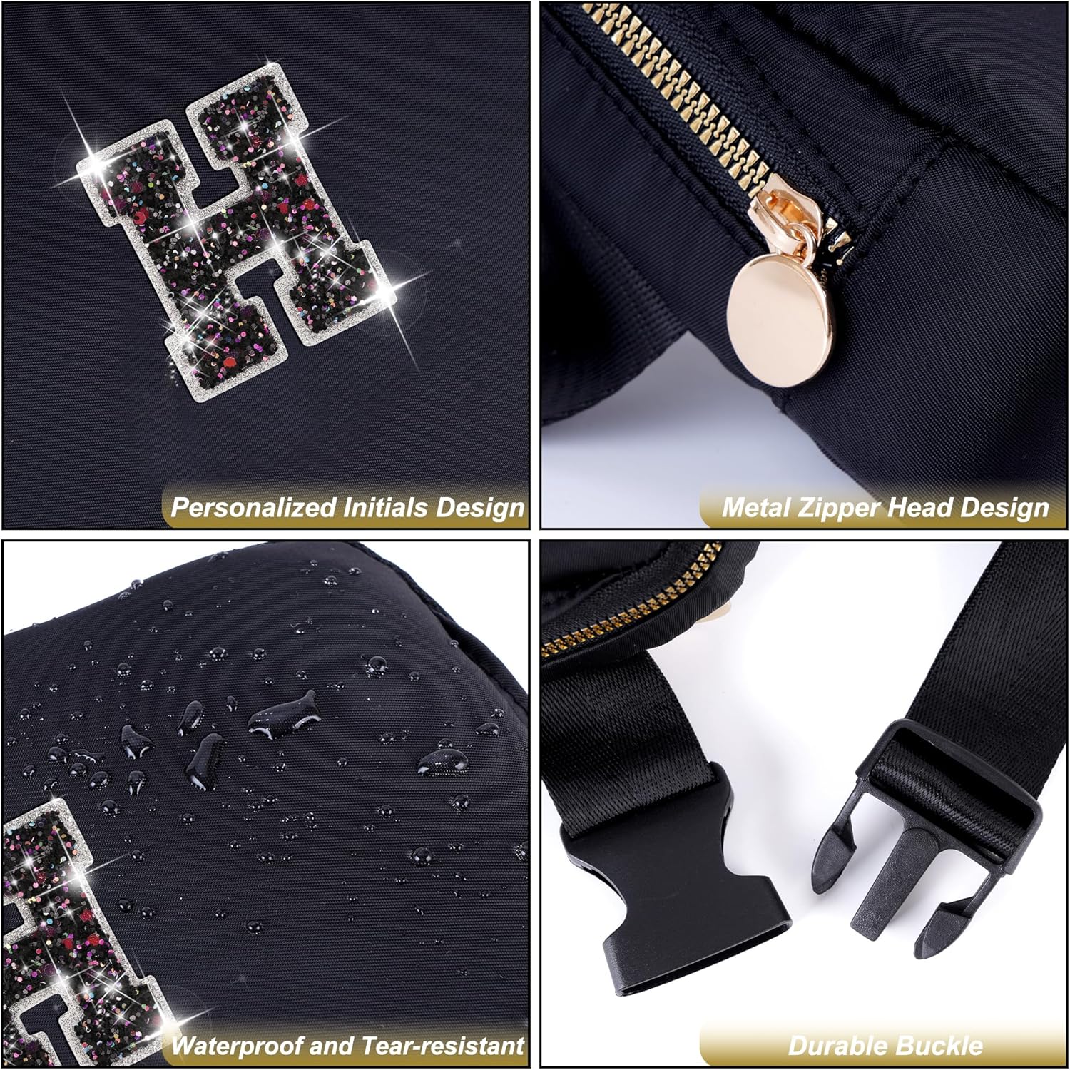 - HIGH QUALITY MATERIAL: Made of waterproof nylon material,but please do not immerse it in water.This fanny bag is designed with a round metal zipper head and personalized initials for a stylish and elegant look